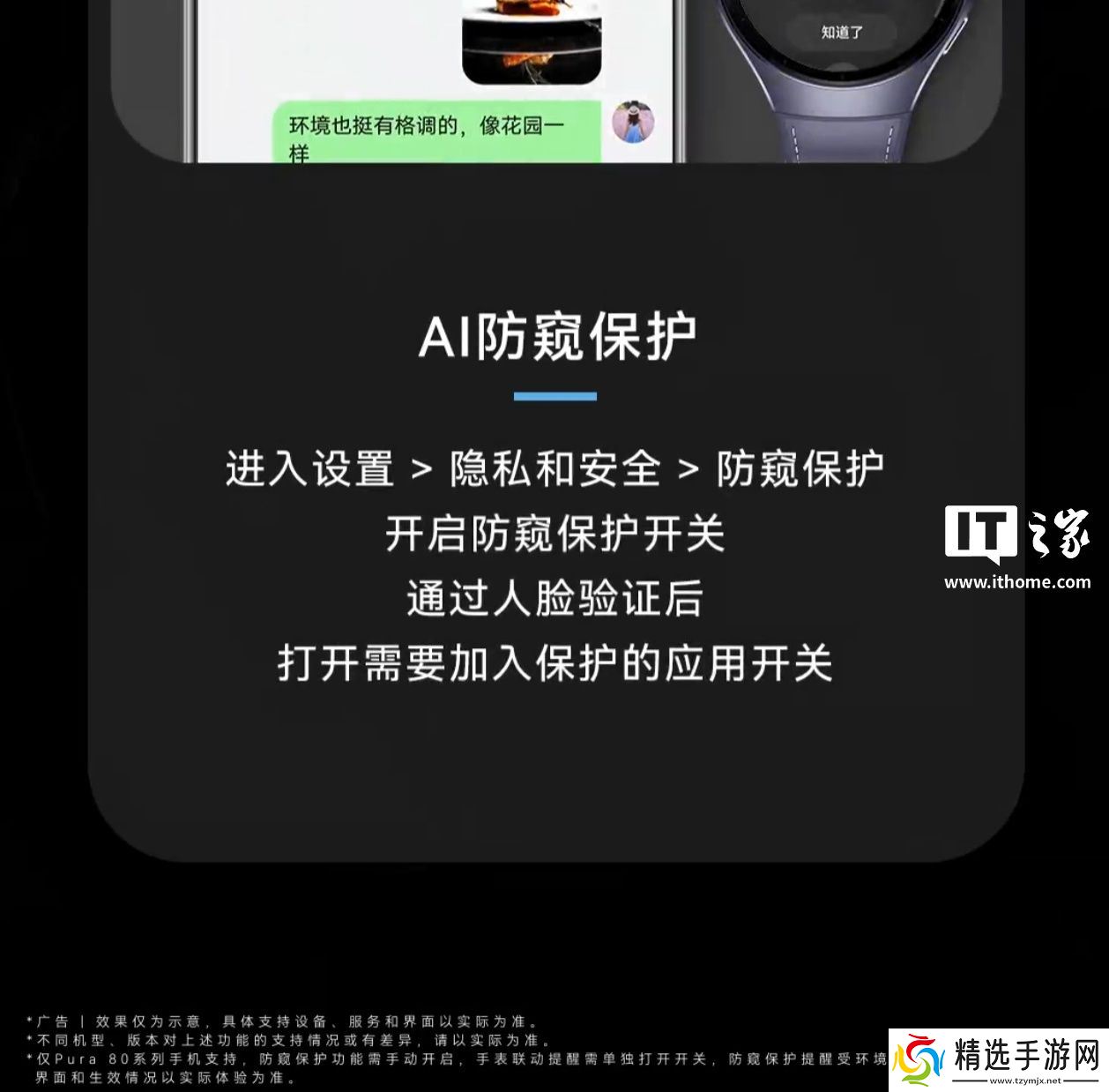 本站 7 月 23 日消息,华为官方昨日对鸿蒙 HarmonyOS 5.1 版本系统进行了宣传,其中介绍了“AI 防窥保护”这一功能,其支持应用根据屏幕窥视状态保护机主隐私。然而在官方的宣传物料中却小字注释仅 Pura80 系列机型支持,从而引发了用户的不满。