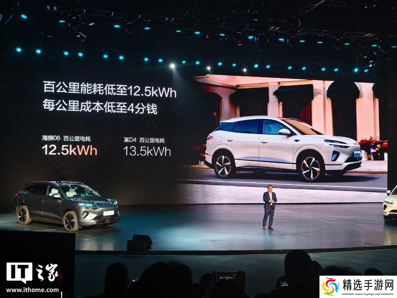 海狮 06 EV 搭载 800V 高压平台,以及 12 合 1 智能电驱系统,百公里电耗 12.5kWh,最大充电功率 237kW。