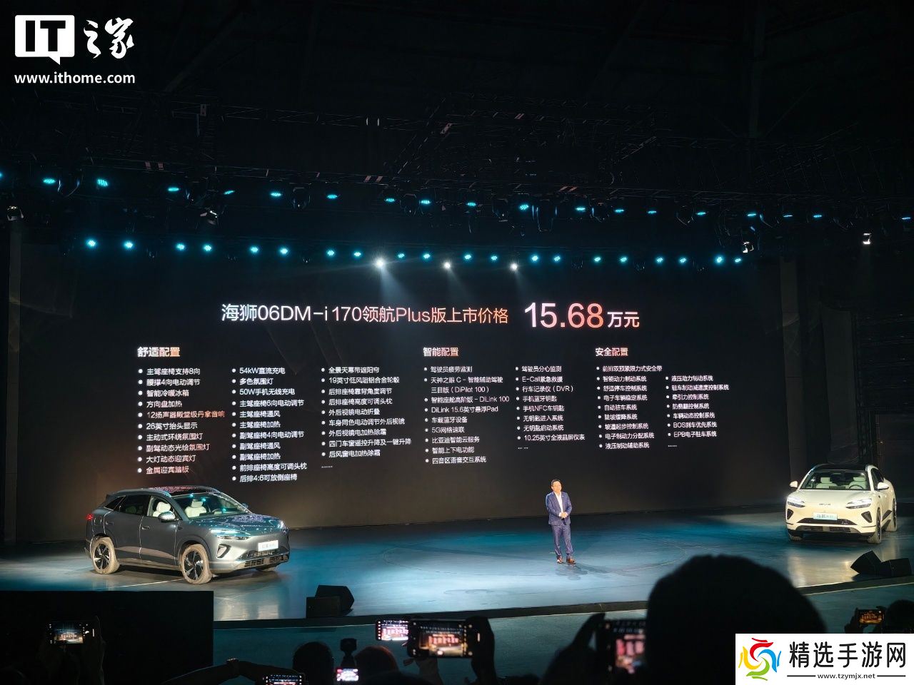 动力方面,比亚迪海狮 06 插混版搭载第五代 DM-i 混动,160kW 电机和 1.5L 发动机,首创“七合一”动力域控,号称综合续航可达 1670km。