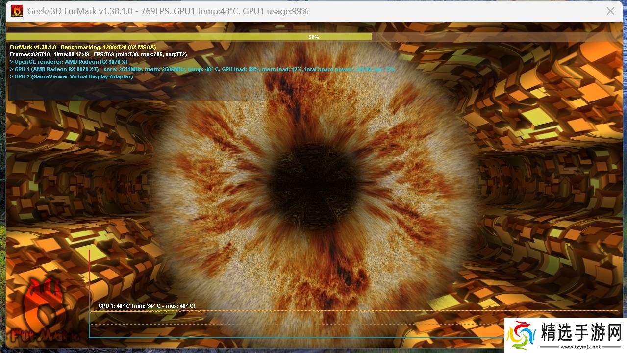 笔者在实际测试中,通过长达45分钟的烤机过程,发现显卡的最高温度仅为48度,即便在双烤状态下,温度也仅略微上升到50度。这样的散热性能,对于一款中高端定位的显卡来说,无疑是非常出色的。