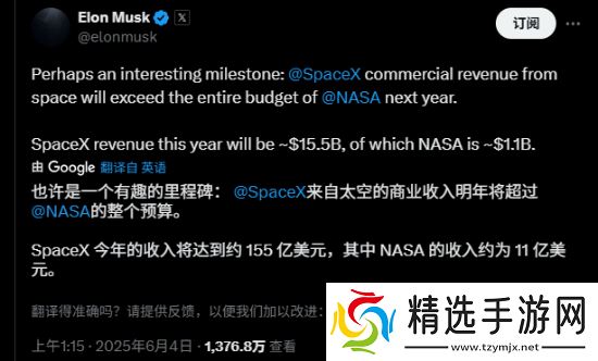 更为引人注目的是,马斯克透露,商业航天业务将成为公司的一大亮点,其收入有望首次超越美国国家航空航天局的全年预算。在预计的155亿美元总收入中,来自该航天局的资金约为11亿美元,相当于人民币79亿元,尽管这部分资金占据的比例不小,但商业航天业务的崛起无疑为公司带来了新的增长点。