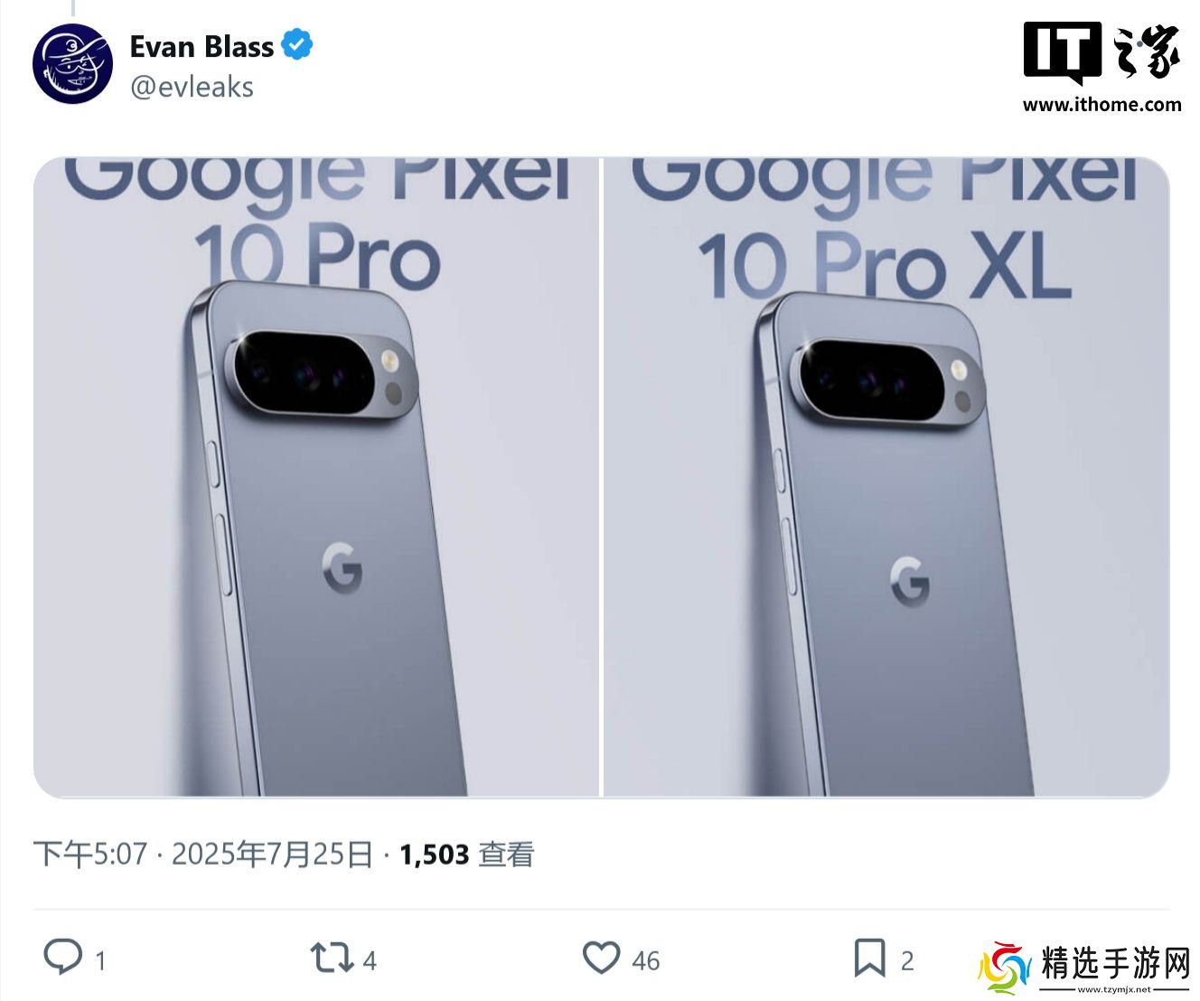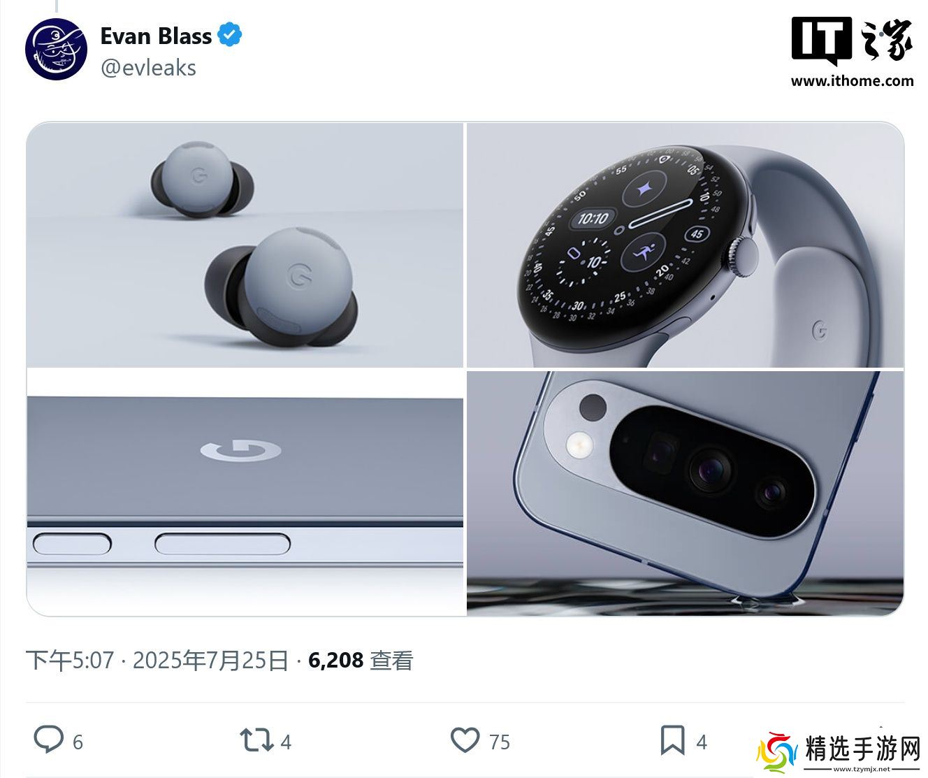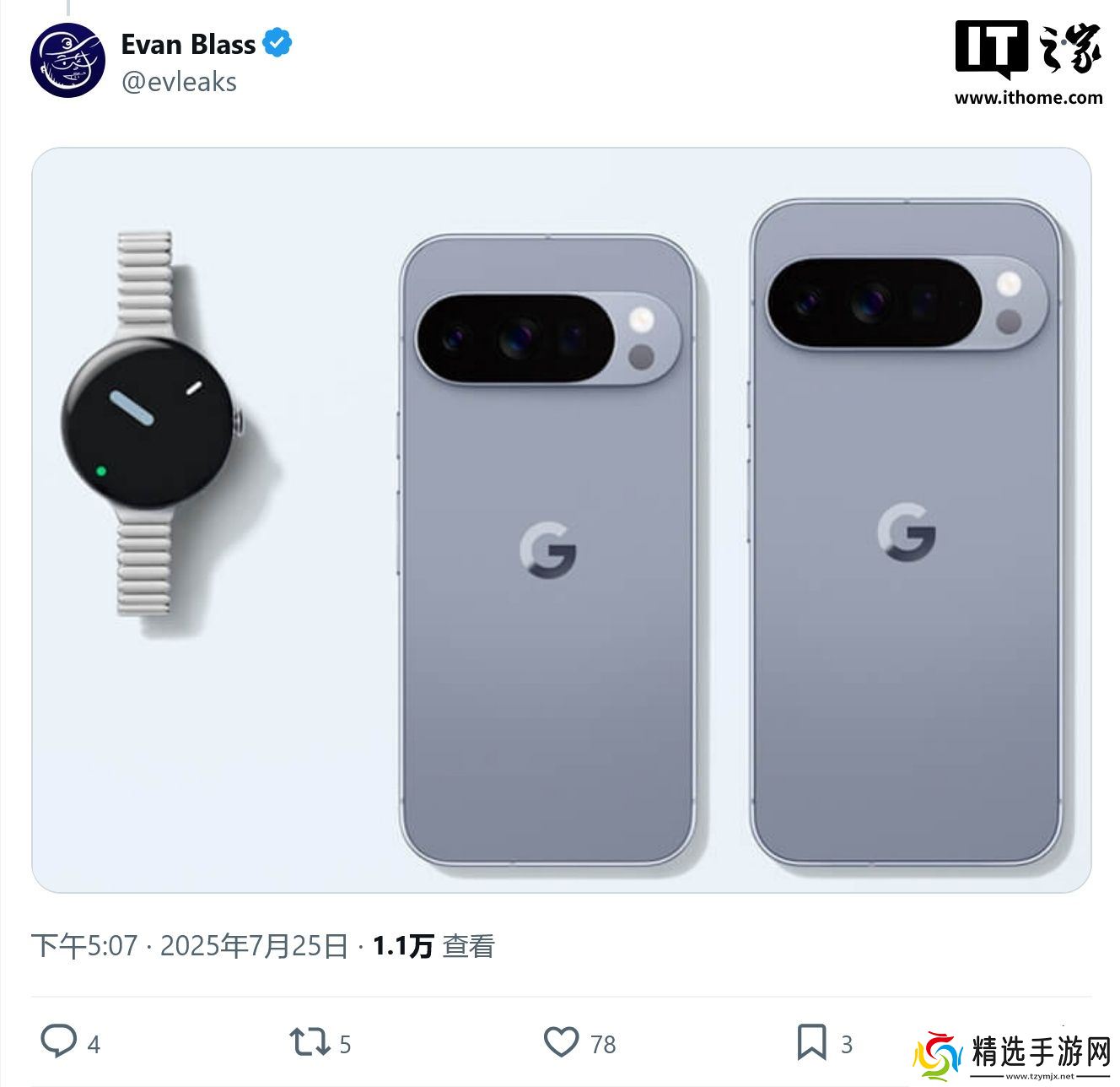 本站 7 月 25 日消息,在 8 月 20 日谷歌官方正式发布之前,消息源 @Evleaks 今天(7 月 25 日)在 X 平台发布系列推文,展示了“月光石”(Moonstone)颜色的 Pixel 10 Pro / XL、Pixel Watch 4。