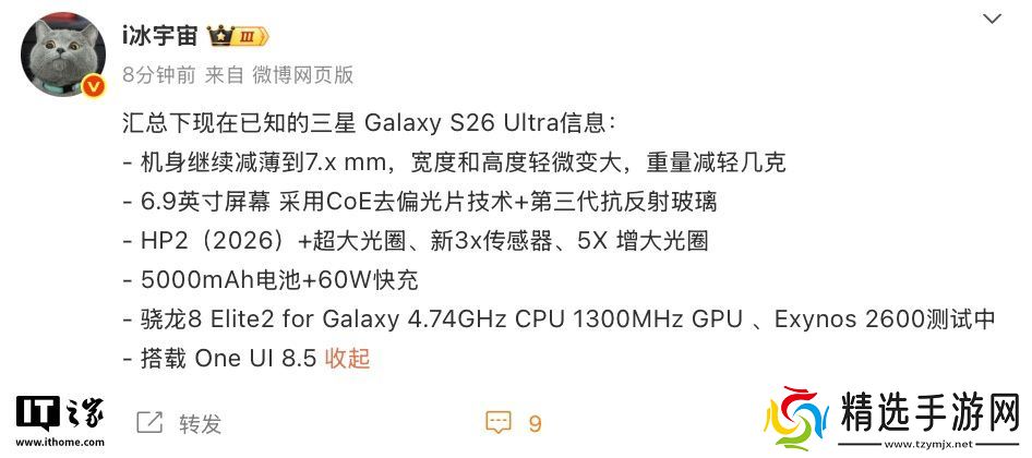 本站 7 月 28 日消息,博主 @i冰宇宙 发文,对目前已知的三星 Galaxy S26 Ultra 手机进行汇总。