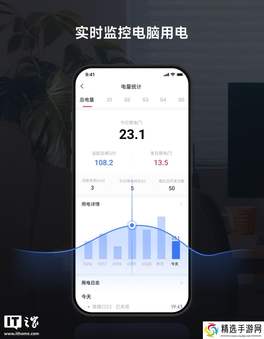 使用 C4 时,用户可通过向日葵 App 实时查看电脑等设备的用电情况,按日、周、月进行数据统计,形成可视化图表。