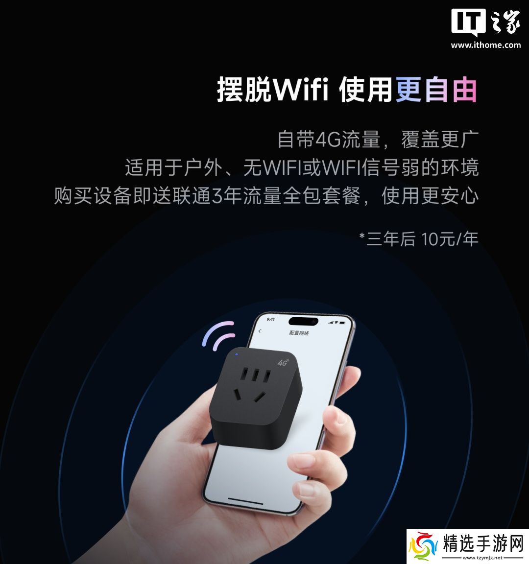 向日葵智能插座 C4 采用 4G 网络连接,免 Wi-Fi 独立联网,无论是在郊外、地库,还是阳台,只要覆盖蜂窝移动网络,就能实现远程开关控制。
