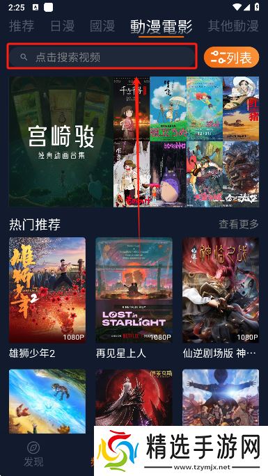 囧次元纯净版2025攻略-如何搜索动漫1、打开在本站下载好的囧次元,进入频道页面点击顶部的搜索框。
