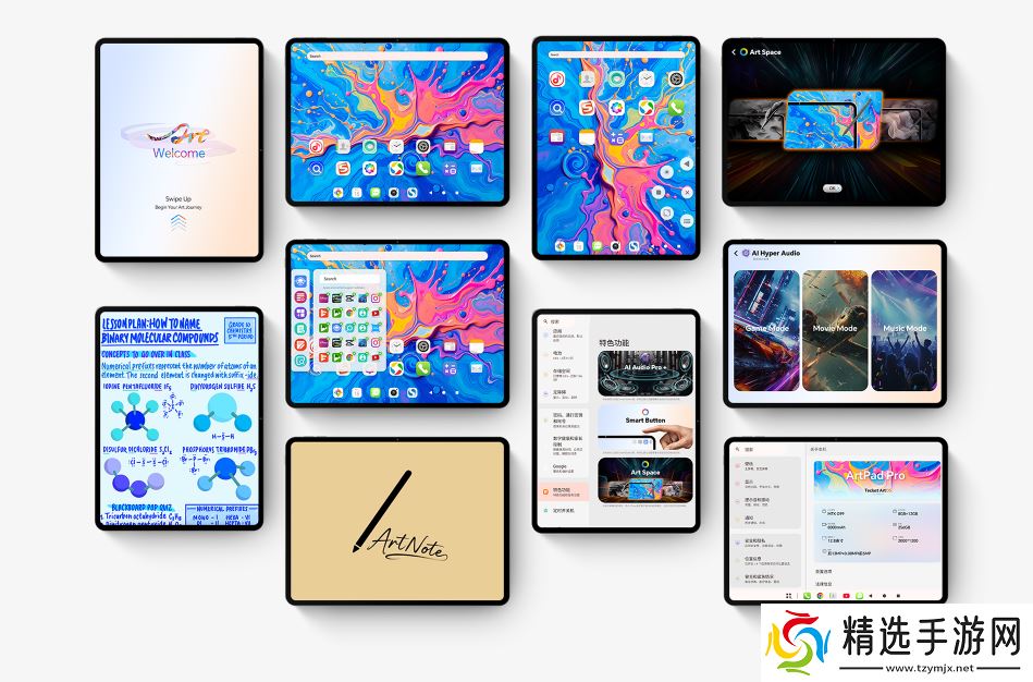 Art 系列平板电脑基于安卓 15 自研了全新的 ArtOS 操作系统,继承了 Art Space 场景模式、AI Hyper Audio、自研创作 App 等多项影音娱乐创作功能。