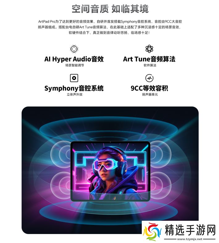 台电全新 Art 系列自研并首发搭载 Symphony 音腔系统,音腔由 9CC 音腔扬声器组成;搭配台电自研 ArtTune 音频算法,适配了多种场景音效。