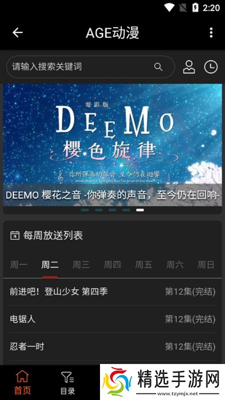 1、首页页面:AGE动漫会进行每周放送,可以查看到每天的动漫更新情况;