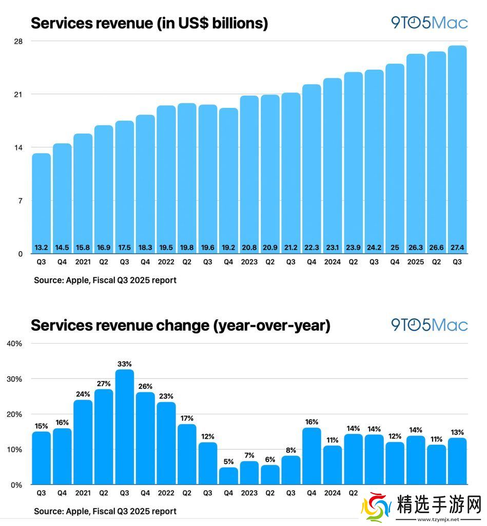 本站援引博文介绍,附上苹果各项业务的营收情况如下: