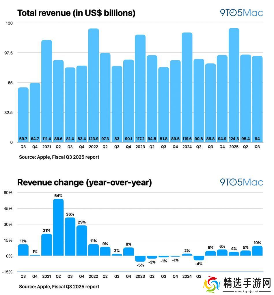 本站 8 月 1 日消息,苹果今天(8 月 1 日)公布了 2025 财年第 3 财季(截至 6 月 29 日)最新财报,总营业收入为 940.4 亿美元,同比增长 10%;大中华区营业收入为 153.7 亿美元,相比较去年同期的 147.28 亿美元,同比增长 4.35%。