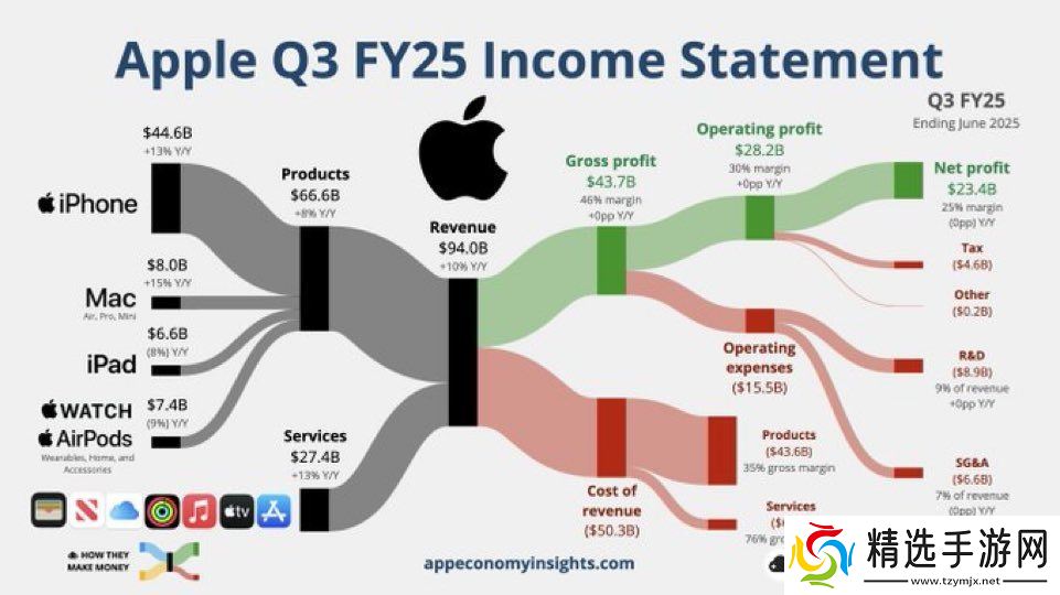 苹果公司第三季度每股收益为 1.57 美元。苹果公司 CEO 蒂姆・库克表示:“我们很自豪地宣布,在第三财季,我们实现了 iPhone、Mac 和服务的两位数增长,并在全球各个地区都有所增长。在 WWDC25 上,我们很高兴地推出了全新的软件设计,它将覆盖我们所有的平台,并宣布了更多出色的 Apple Intelligence 功能。”