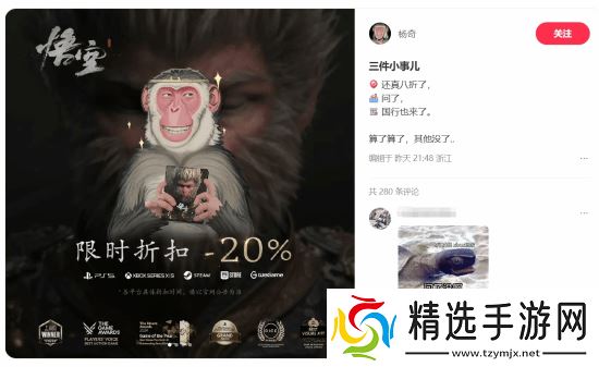 游戏科学还宣布了一个令人振奋的促销活动:“黑神话:悟空”的数字版将在各大平台开启限时折扣,让更多玩家有机会以更优惠的价格体验到这款备受赞誉的游戏。