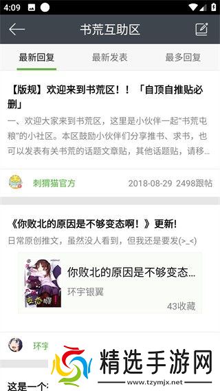 4、点击综合讨论区,会跳转一个新的社区,它是一个总小说阅读讨论区,与书评区不同,该页面覆盖了所有用户发布的讨论话题,在这里您能发现更多有趣好玩的话题或小说;