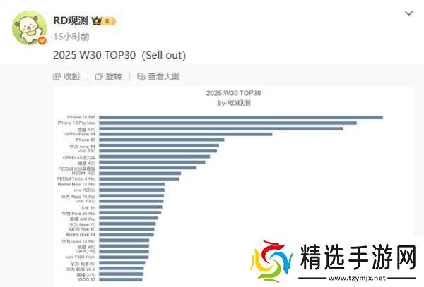 近期,一份关于第30周国内手机市场的销量排行榜单在网络上引起了广泛关注。令人瞩目的是,荣耀X70凭借强劲的市场表现,成功跻身前三甲,仅次于苹果的两款旗舰机型iPhone 16 Pro和iPhone 16 Pro Max。