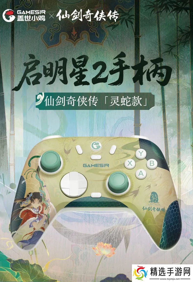 《仙剑奇侠传》联名款:以“灵蛇”为主题,从赵灵儿女娲真身中获取灵感,将蛇的灵动神秘与赵灵儿的侠义融入每一处细节。整体以青绿为主色调,墨绿色蛇鳞片纹泛着青光点缀其中。左握把处呈现经典主角赵灵儿形象、右握把还有《仙剑奇侠传》的标志。