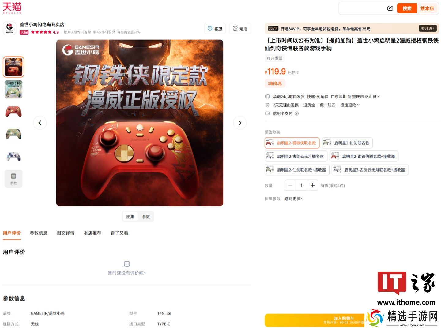 本站 8 月 4 日消息,小鸡启明星 2 × 漫威钢铁侠联名款手柄已正式亮相,新手柄外观以钢铁侠为灵感,采用标志性红金配色,科技感线条勾勒铠甲形态,胸前的方舟反应堆图案点缀。目前新品已上架淘宝(京东暂未上架),将于 9 月 1 日 10:00 正式开售,定价 119.9 元。
