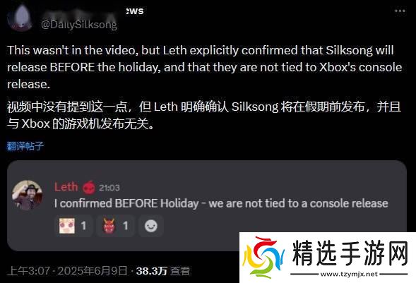 《空洞骑士:丝之歌》曾在任天堂Switch 2 Direct活动中短暂亮相,这一举动无疑为游戏的发售增添了更多的期待值。随后,Team Cherry也确认了游戏将在2025年内发售的消息,这让玩家们对于游戏的到来更加迫不及待。
