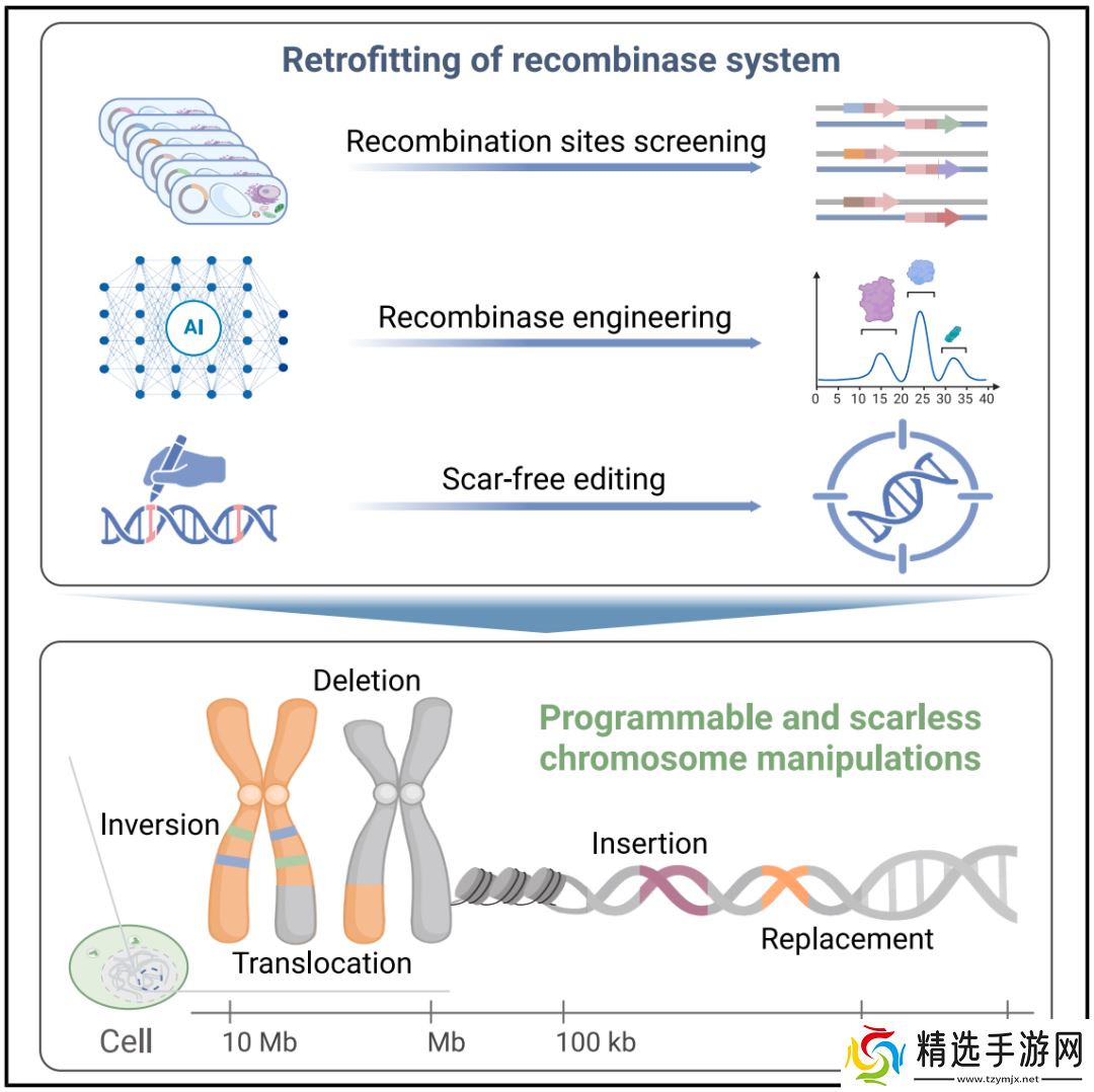 该技术在动植物中实现了从千碱基到兆碱基级别 DNA 的多类型染色体精准操纵,显著提升了真核生物基因组的操纵尺度和能力。