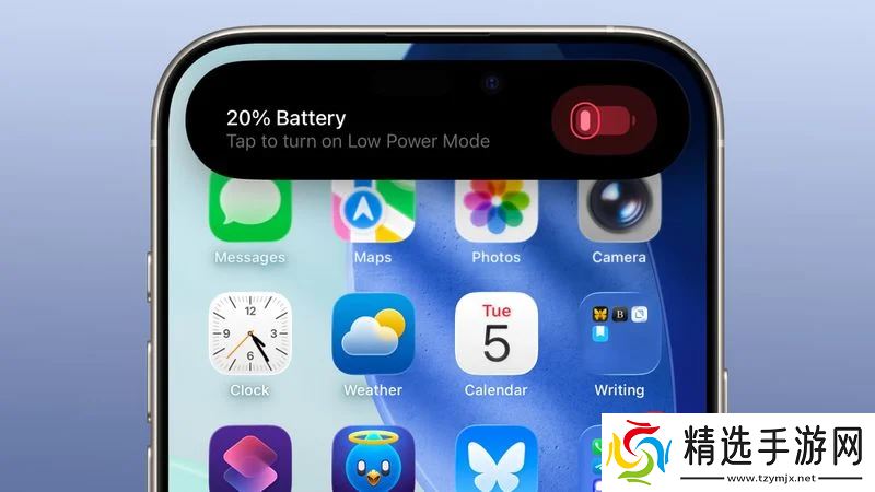 苹果优化电池提醒:电量低于 20% 后,系统将通过“灵动岛”弹出低电量提示。