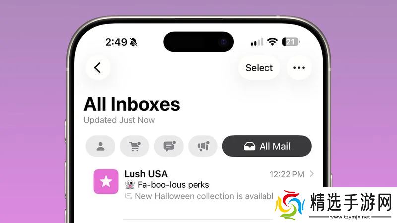 邮件应用中,“选择”按钮已移出“更多”菜单,改为常驻显示,提升可访问性。
