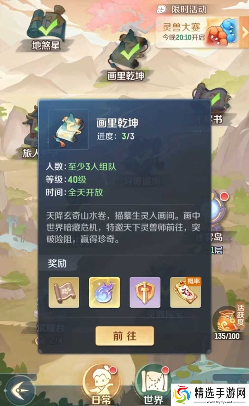 灵兽大冒险画里乾坤怎么玩?很多玩家在达到40级后想要体验这个有趣的组队玩法,画里乾坤是灵兽大冒险中重要的心法资源获取途径。下面就来详细介绍一下这个玩法的具体内容和参与方式。