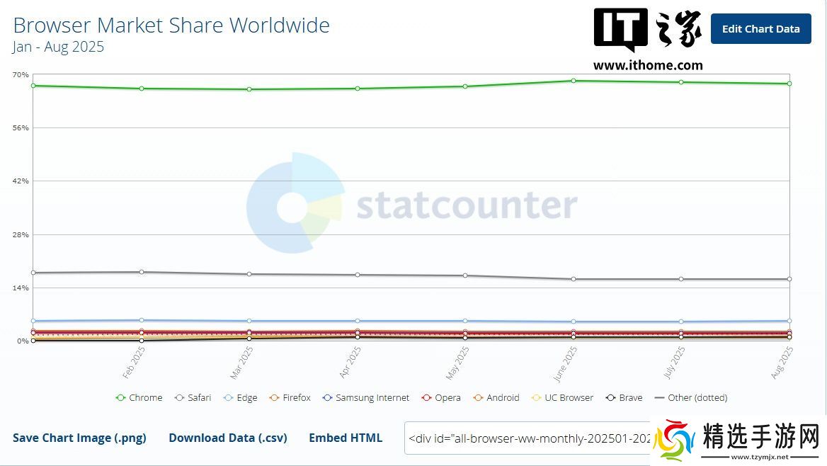 本站发稿前,查询 Statcounter 平台统计数据,目前 Firefox 浏览器的全球占比为 2.45%,而在 2025 年 1 月的占比为 2.54%,整体呈现不断下滑的趋势。