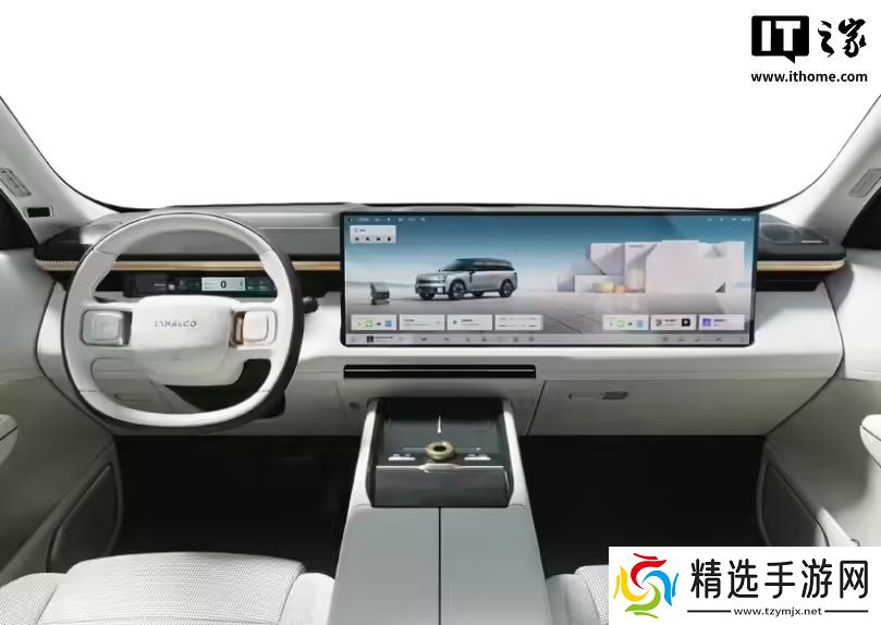 新车座舱前排配备了一块 30 英寸 6K 分辨率的一体式中控屏,屏幕比例为 32:10,搭载高通骁龙双 8295 座舱芯片。主驾驶前方的全液晶仪表尺寸为 12.66 英寸,采用隐藏式设计。领克 900 采用 2+2+2 式的 6 座布局,配备双 180 度电动旋转座椅。