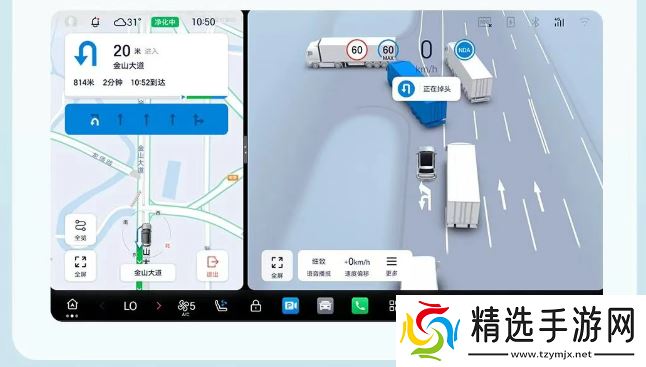 驾驶环境信息可视化升级:路面渲染分区更精细了,可通行区域用深灰,不可通行用浅灰,一目了然。