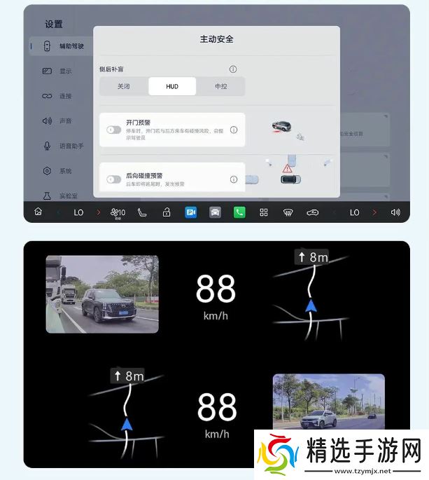 HUD 车侧补盲影像:后视盲区影像默认在 HUD 界面显示,无需再专门手动设置