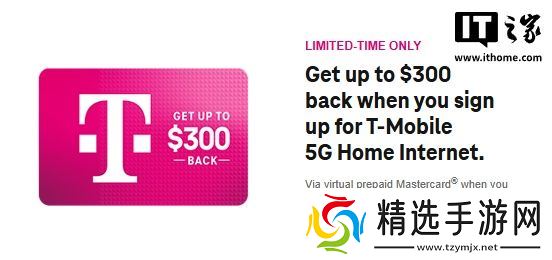 据介绍,凡符合条件并新转入 All-In 5G 家庭宽带套餐的用户均可通过虚拟万事达预付卡获得 300 美元返现(不可提现,仅支持在网上或线下购物时抵扣),还将提供 15 天“反悔期”(无条件退款)。