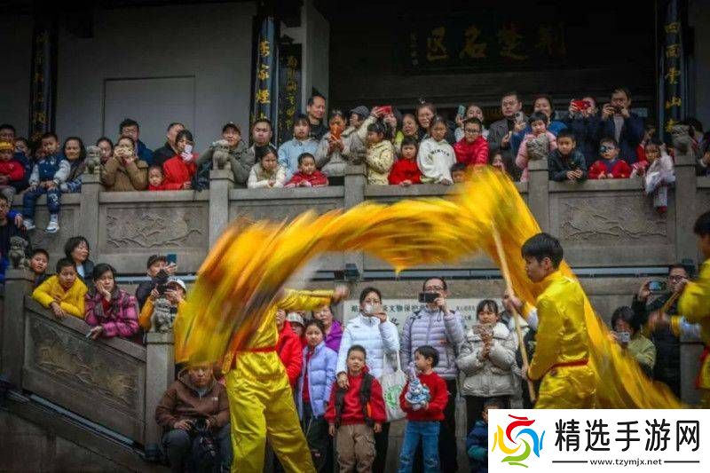 在天心阁新春民俗妙会上,舞龙舞狮表演尤为引人注目。舞者们身着华丽的服饰,伴随着激昂的鼓点,灵活舞动,将传统民俗的魅力展现得淋漓尽致。魔术杂耍、新春送福等年味十足的演艺活动也轮番上演,让观众们大饱眼福。