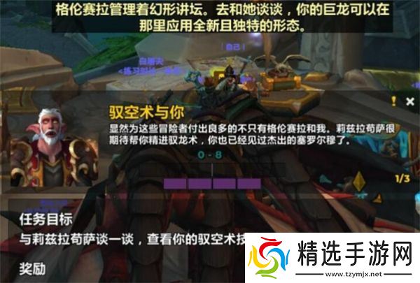 1、任务起点:首先,玩家需要推荐任务“驭空术与你”,然后前往位于巨龙群岛的觉醒海岸的天顶观察站。