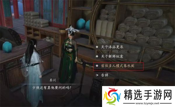 2、前往春水阁:在多人模式下,前往春水阁。在春水阁的一楼更衣室内,换上浴袍。
