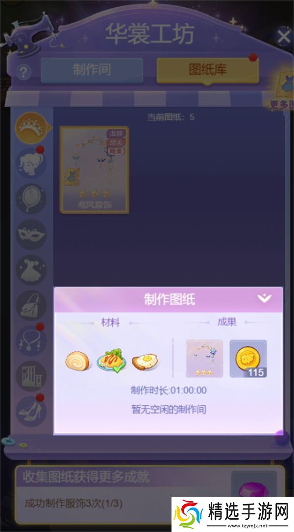 工坊内加入图纸:将已获得的服饰图纸加入到华裳工坊中。