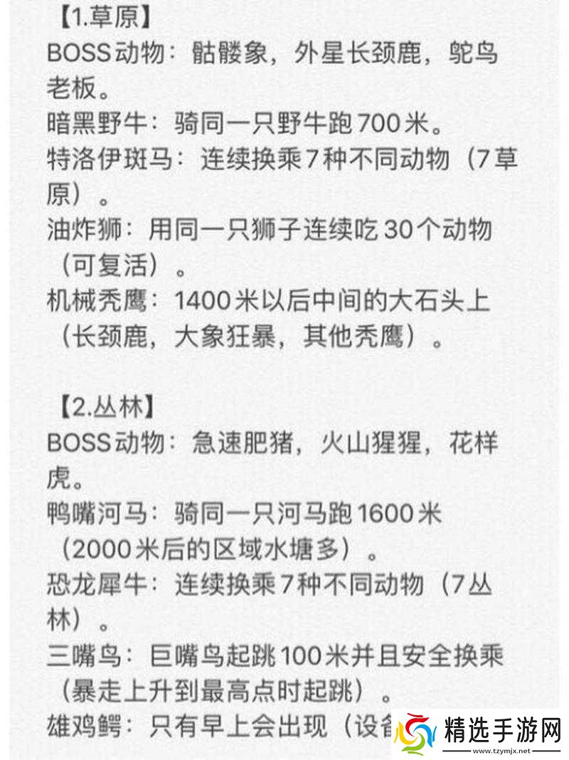 还有一个小技巧就是多尝试不同的组合搭配。比如,连续换乘特定种类的动物,或者按照特定的顺序骑乘不同类型的动物,都有可能触发隐藏动物的出现。