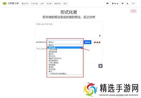 6、除了转换成更有礼貌的话,也可以选择更专业等选项,用户可以自行尝试。