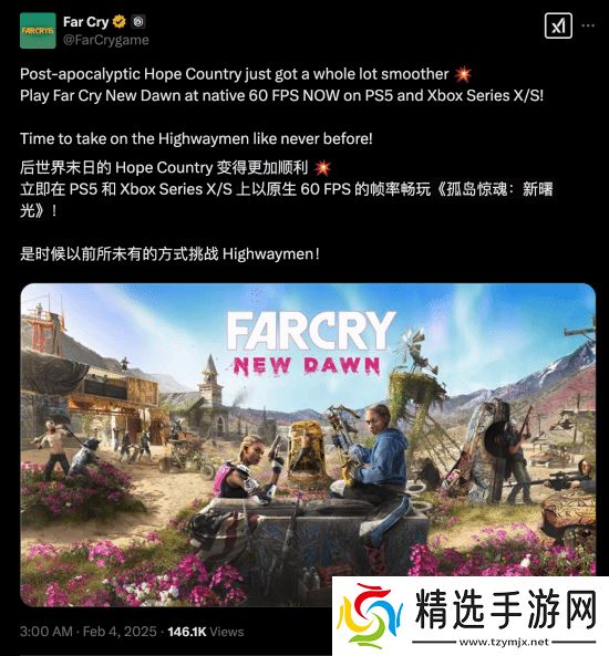 近日,知名游戏开发商育碧宣布了一项针对其热门游戏《孤岛惊魂:新曙光》的重要更新。此次更新特别针对PS5和Xbox Series X/S平台,为玩家带来了原生60帧的游戏体验。