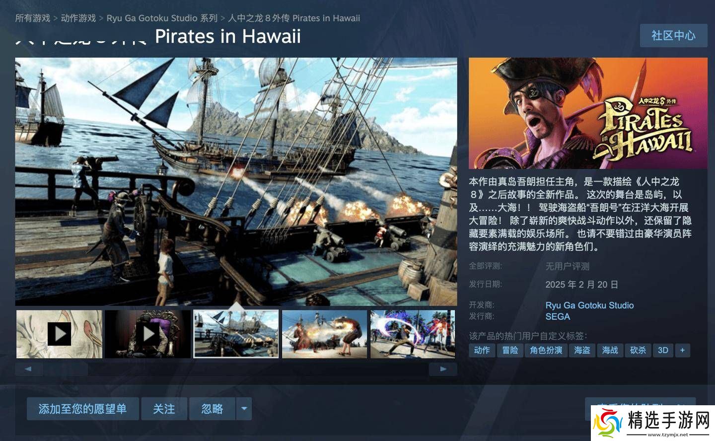《人中之龙 8 外传:夏威夷海盗》将于2月21日同步登陆Xbox Series X/S、Xbox One、PS4、PS5以及PC平台。游戏支持简体中文、繁体中文以及中文配音,起售价为263元。玩家们可以通过Steam平台购买并体验这款游戏。