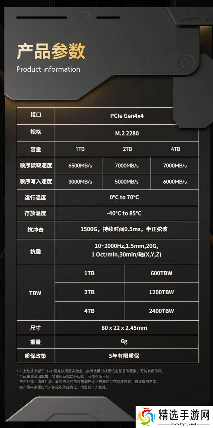 为了满足用户对硬盘参数的详细了解需求,雷克沙还提供了详细的硬盘参数表。从参数表中可以看出,THOR PRO雷神系列SSD固态硬盘在性能表现上十分优异,不仅读写速度惊人,而且在耐用性方面也有着出色的表现。