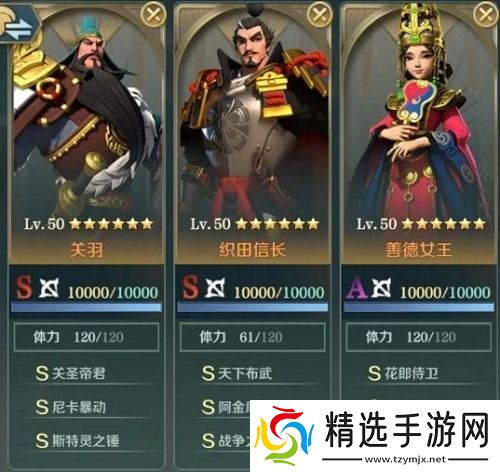 2.当土地复垦完成并逐步进入高级发展时期时,我们的燃烧队可以通过新的搭配理念提高关羽的生存能力。这支高级燃烧队由三位英雄组成:关羽、织田信昌和善德女王。该团队专注于预防和控制,为关羽创造良好的输出环境。