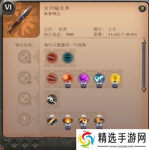 设备一共分为T2到T8(装备左上角的罗马字母),一般装备T6解锁所有技能,二阶三阶特殊设备T4即可解锁,