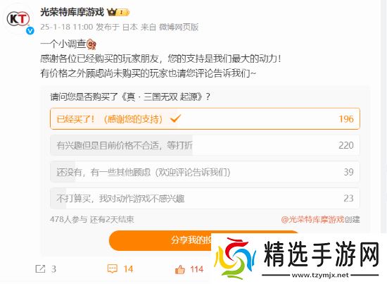 有趣的是,游戏发布后不久,光荣特库摩的官方微博便推出了一份调查问卷,旨在收集玩家对于游戏的各项反馈,其中,“价格不合适”成为了一个被特别提及的议题。