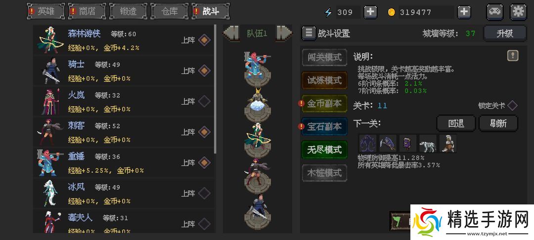 ③、闯关和无尽关卡,右侧有一个小按钮“锁定关卡”,点击后不会自动推关,会一直在当层刷资源。
