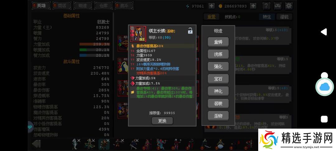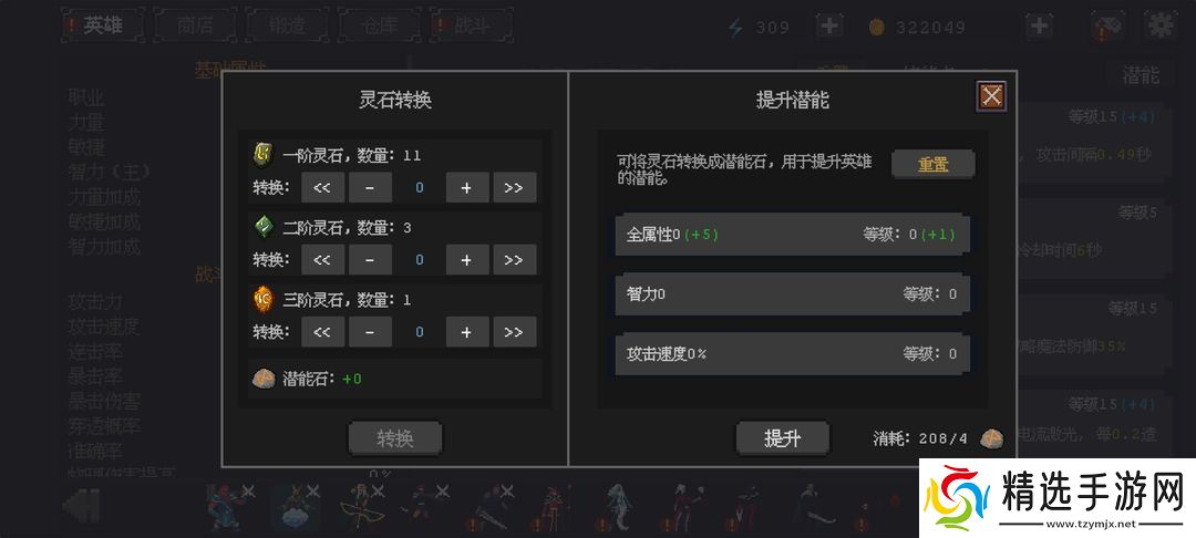 英雄升到60级后,可使用潜能石增加属性。