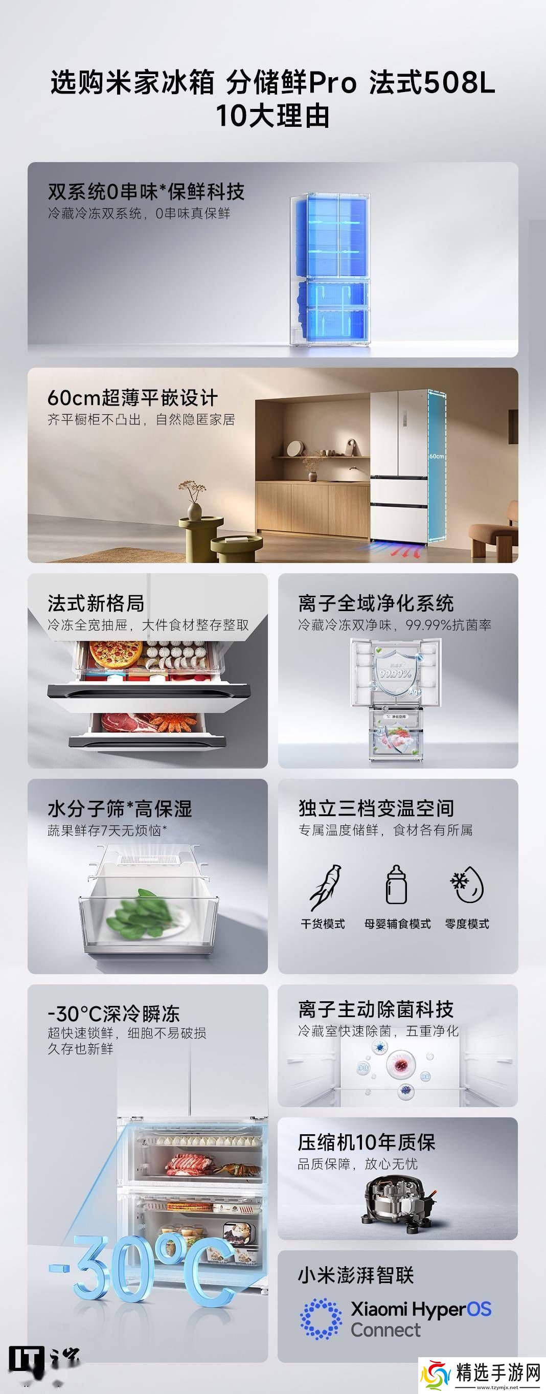 为了满足不同食材的储鲜需求,这款冰箱还提供了干货、母婴、零度三档变温功能。同时,它还采用了水分子筛生态保湿技术和离子全域净化抗菌技术,确保食材的新鲜度和卫生安全。冰箱还支持-30度的瞬冻功能,能够迅速锁住食材的营养和口感。该冰箱的压缩机还拥有10年的质保期,为消费者提供了更加可靠的使用保障。