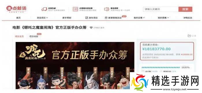 集卡社推出的《哪吒2》电影官方联名收藏卡也备受追捧,据商家透露,该产品全渠道销售额一周内便突破1亿元大关。而《哪吒2》的另一合作方FunCrazy塑料主义、阿里鱼旗下品牌“造点新货”发起的众筹项目,目标筹款10万元,最终筹得超过1800万元,远超预期。