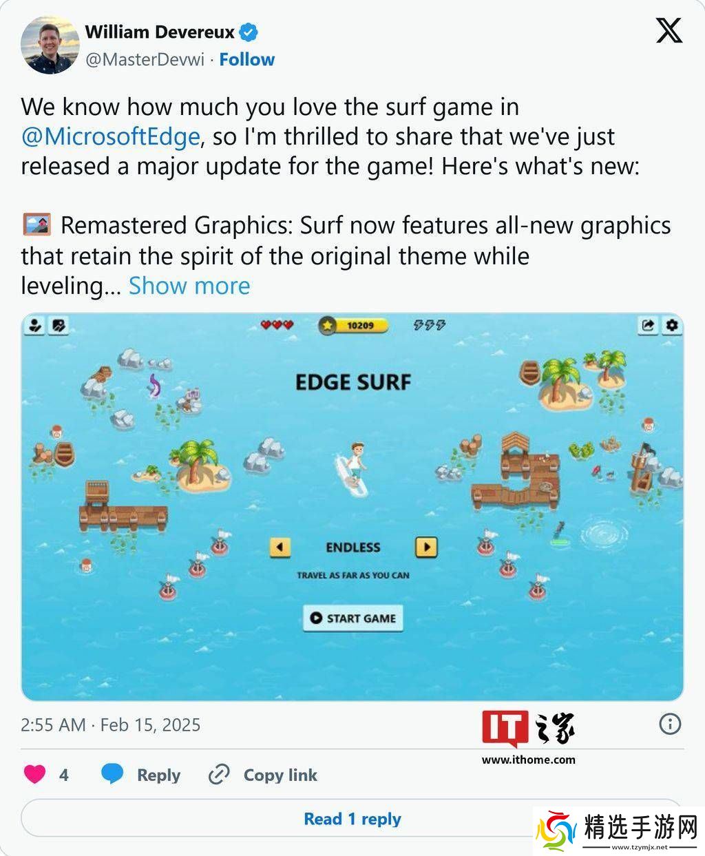 微软Edge浏览器近日迎来了一项令人兴奋的游戏更新,其内置的“冲浪”小游戏焕然一新,为用户带来了更加丰富的游戏体验。此次更新由Edge高级项目经理William Devereux在X平台上正式宣布,引起了广泛关注。