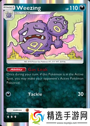 双弹瓦斯:特性能让对方前场宝可梦中毒,每个回合结束掉10血,自身可以作为任何卡组的肉盾使用。控制卡组的可选过渡组件。