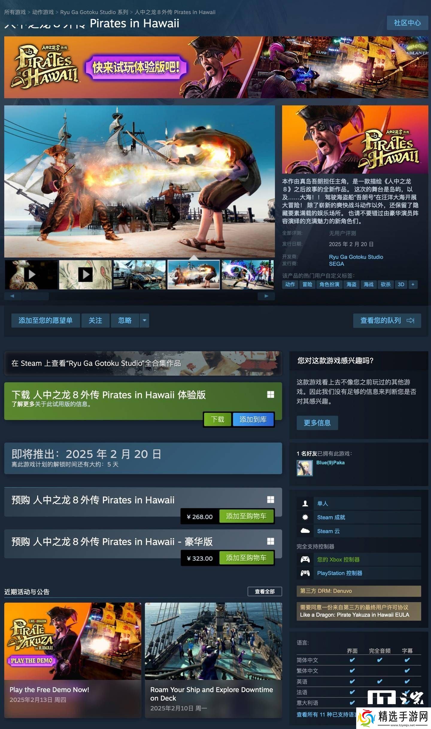 近日,备受期待的游戏《人中之龙 8 外传:夏威夷海盗》已正式开启免费试玩活动。此次试玩版本允许玩家率先踏入檀香山与虚构的马德兰蒂斯区域,亲身体验游戏焕然一新的战斗机制。